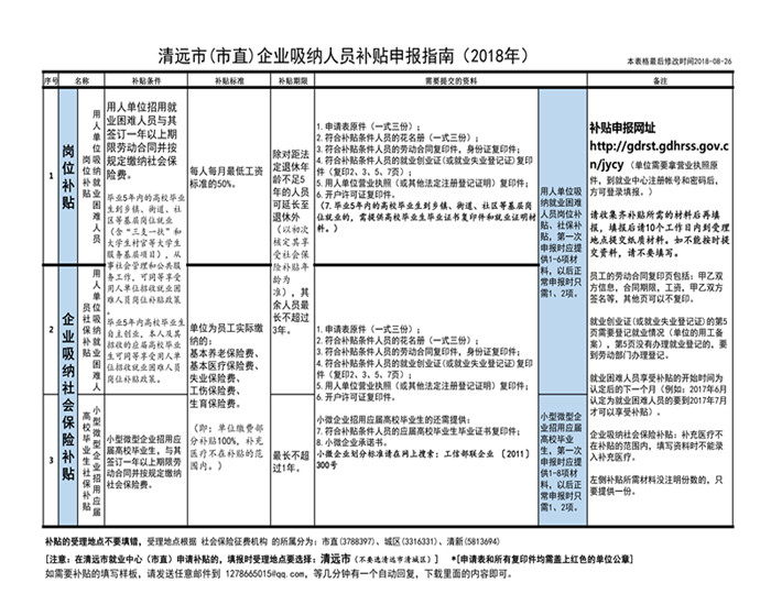 清遠(yuǎn)市(市直)企業(yè)吸納人員補(bǔ)貼申報(bào)指南(2018年)